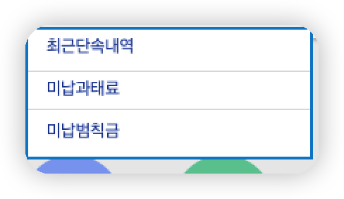 해당 탭을 눌러보시면 미납 내역 조회 및 기납부 내역 조회 등의 메뉴가 자리하고 있습니다.