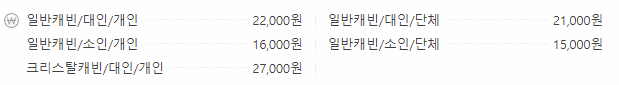 그리고 한 등급 위의 크리스털 캐빈 금액은 대인 기준 27,000원입니다.