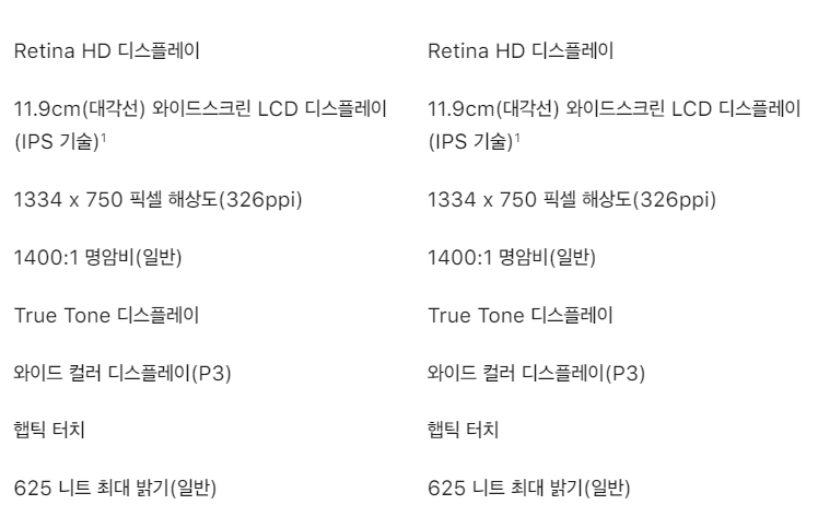 폼팩터가 동일하긴 하지만, 디스플레이 해상도는 좀 올려줄 법도 한데 애플은 아직 그럴 생각이 없나 봅니다.
