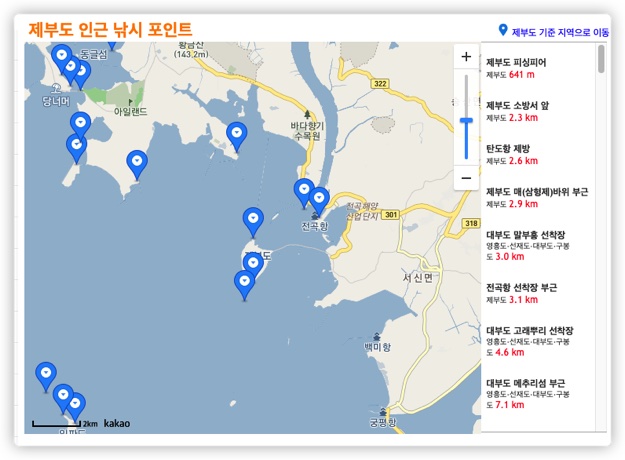 눌러보니, 제부도 인근 낚시 포인트를 지도상으로 표기해 주어 서해 낚시할 만한 곳이 어디 어디 있는지 자세히 정보를 보여주고 있습니다.