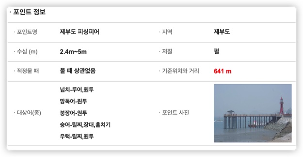 그리고 낚시 포인트 별로 수심과 적정 물 때, 대상어종 등의 정보가 있네요. 서해로 낚시 많이 다니시는 분들은 이 사이트를 활용하면 많은 도움이 되실 것 같습니다.
