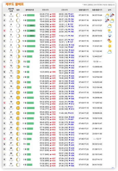 제부도 물때 시간표 12월