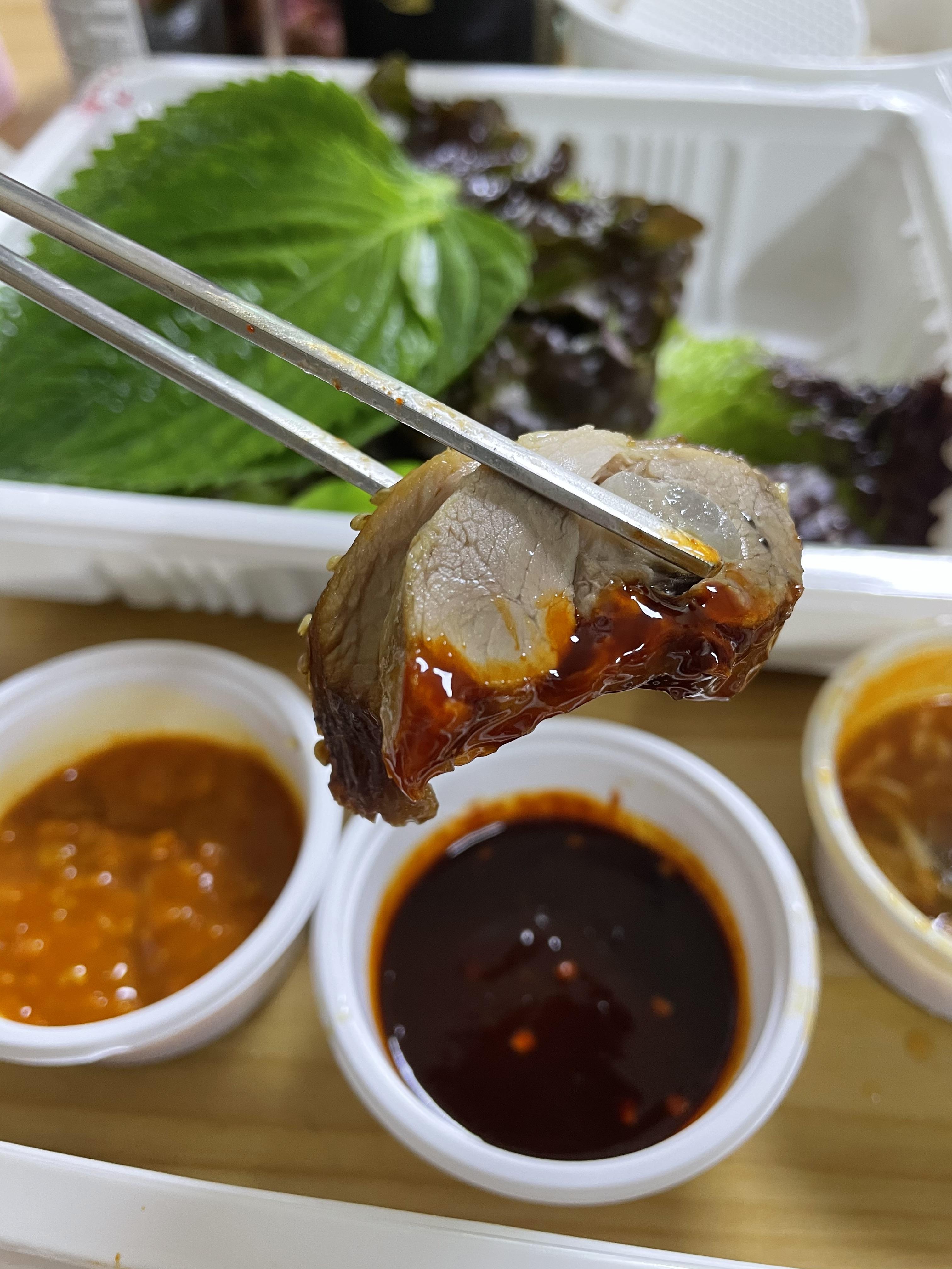 살코기도 상당히 덜 퍽퍽한 편이라서, 살코기만 따로 먹어도 식감도 좋고 퍽퍽해서 음료 찾고 그러지 않았습니다.